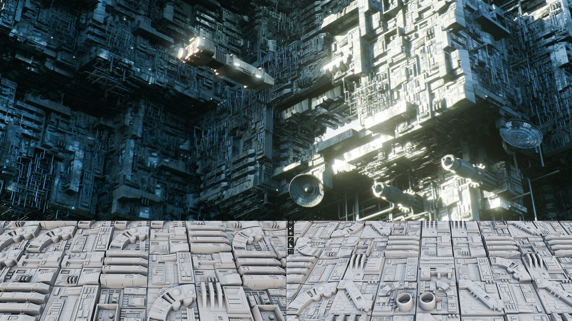 2 Displacement sci-fi walls(Displacement maps for instant details)